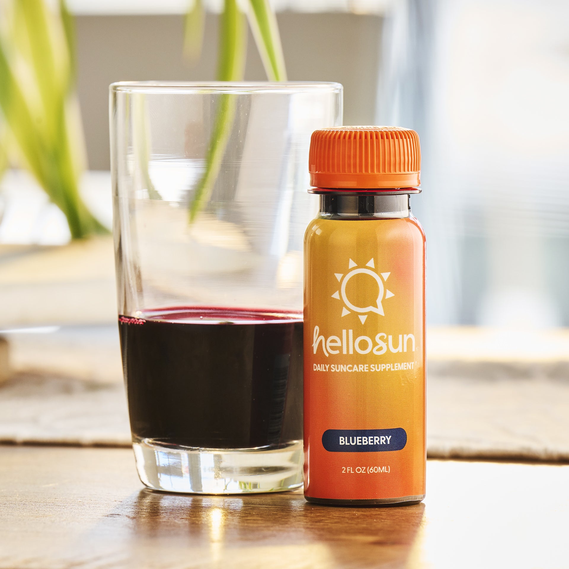 HelloSun® concentrates purple-carrot anthocyanins with Vitamin C, Zinc, and B2 in a daily 2 oz drink. The ingredients in HelloSun are formulated to: