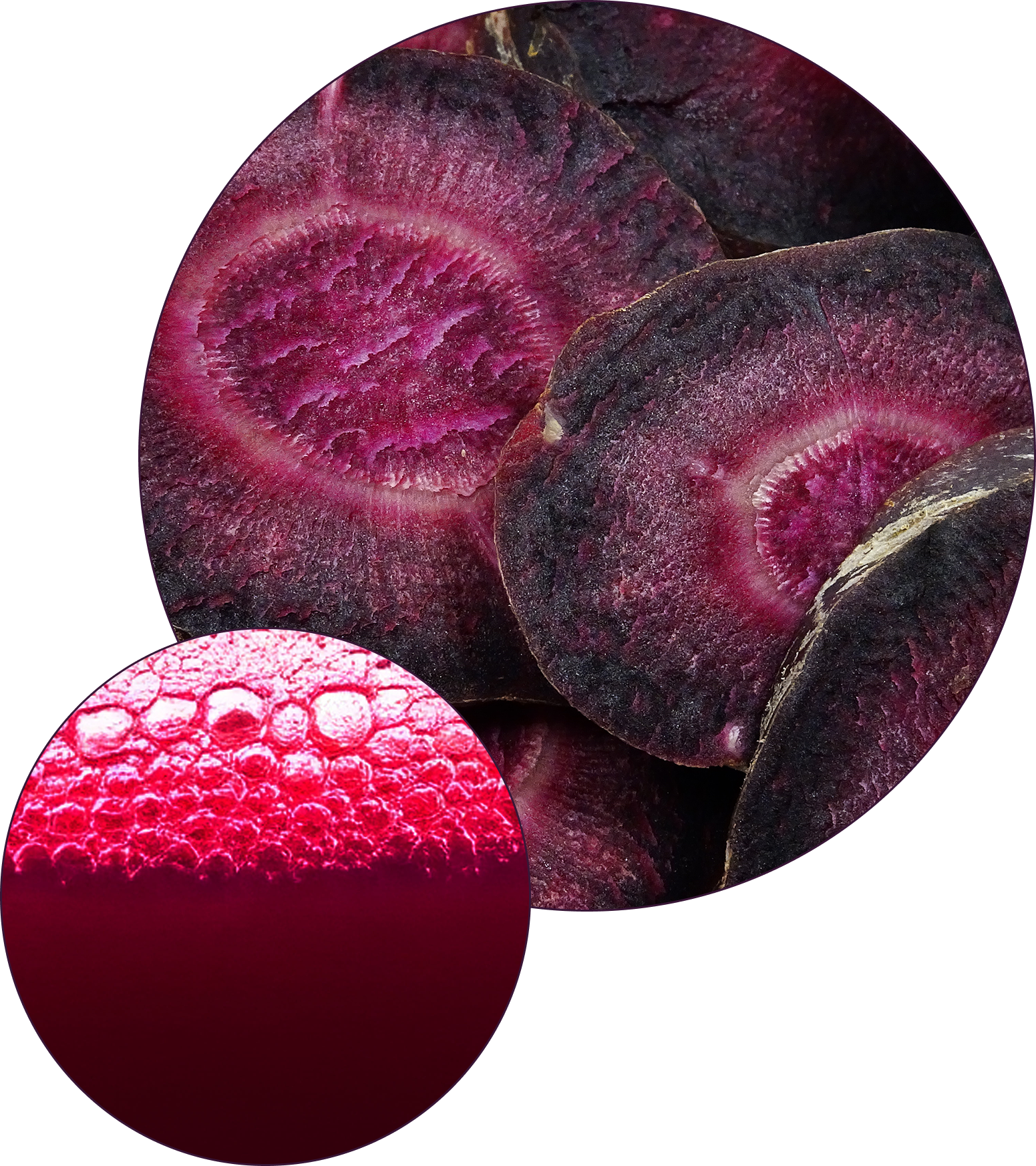 †Equivalent to the anthocyanin content of ~5 lbs of purple carrots.